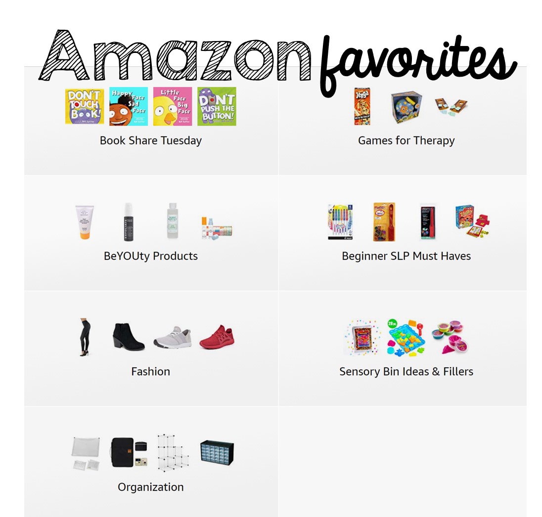 If you want to check out some of my favorite items for therapists, you can check out my Amazon storefront where I save all of my favorite therapy games, books, sensory bin items, and more (aff links) for the busy SLP.