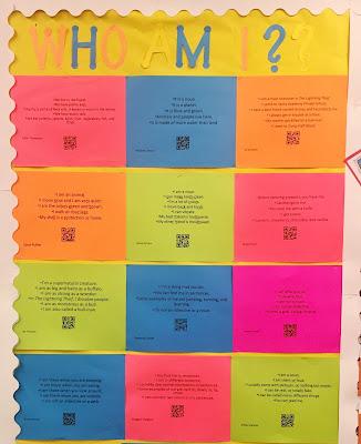 And so began the QR Code Riddles- Who Am I?? bulletin board:
