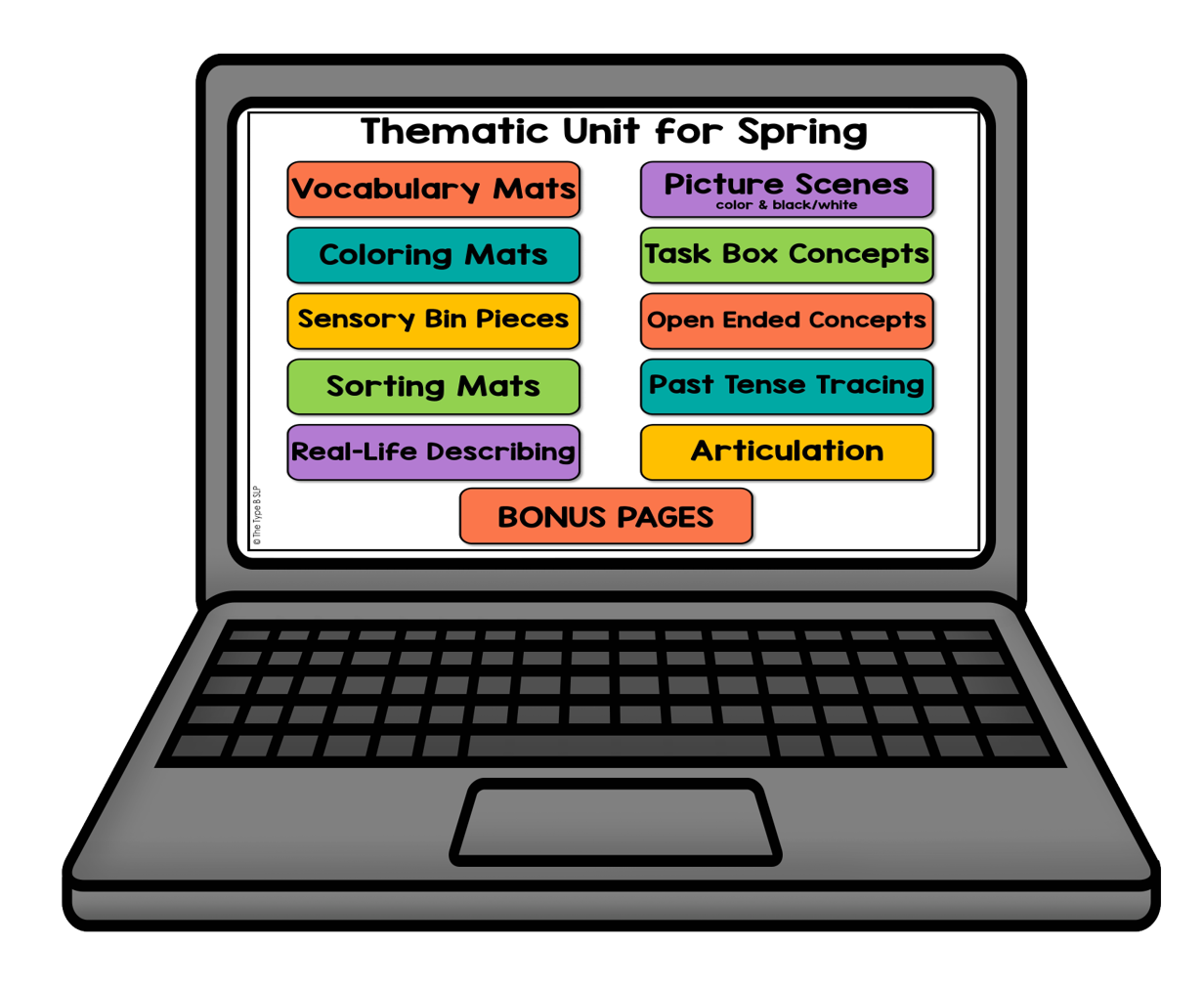 Springtime Verbs (included in the Spring unit) are great for creating sentences related to springtime. I'll give the student control using annotate so that they can color the pictures as we talk about each verb. For my students who can't take over control, they'll give ME the direction for coloring!