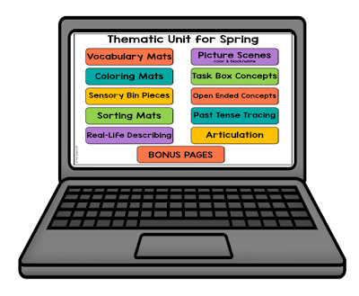 We'll start out our sessions this week with a Spring-related show and tell. I've already told all of my students and parents to arrive to therapy with something makes them think of Spring. I myself will be showing up to each session in big goofy sunglasses, because Springtime in Georgia means that that sun is SHINING! (It'll also receive a lot of good silly reactions to get our session started on the right foot).