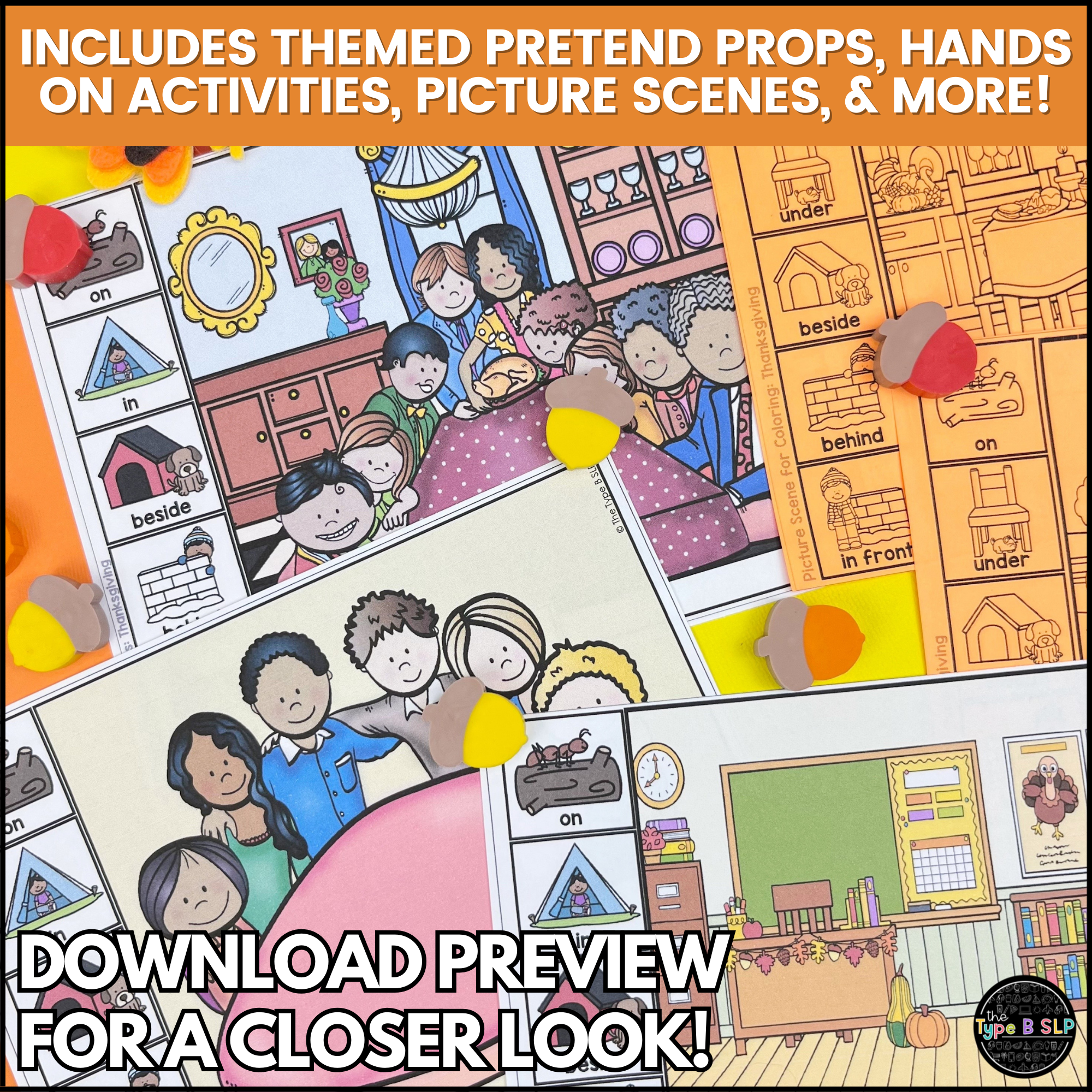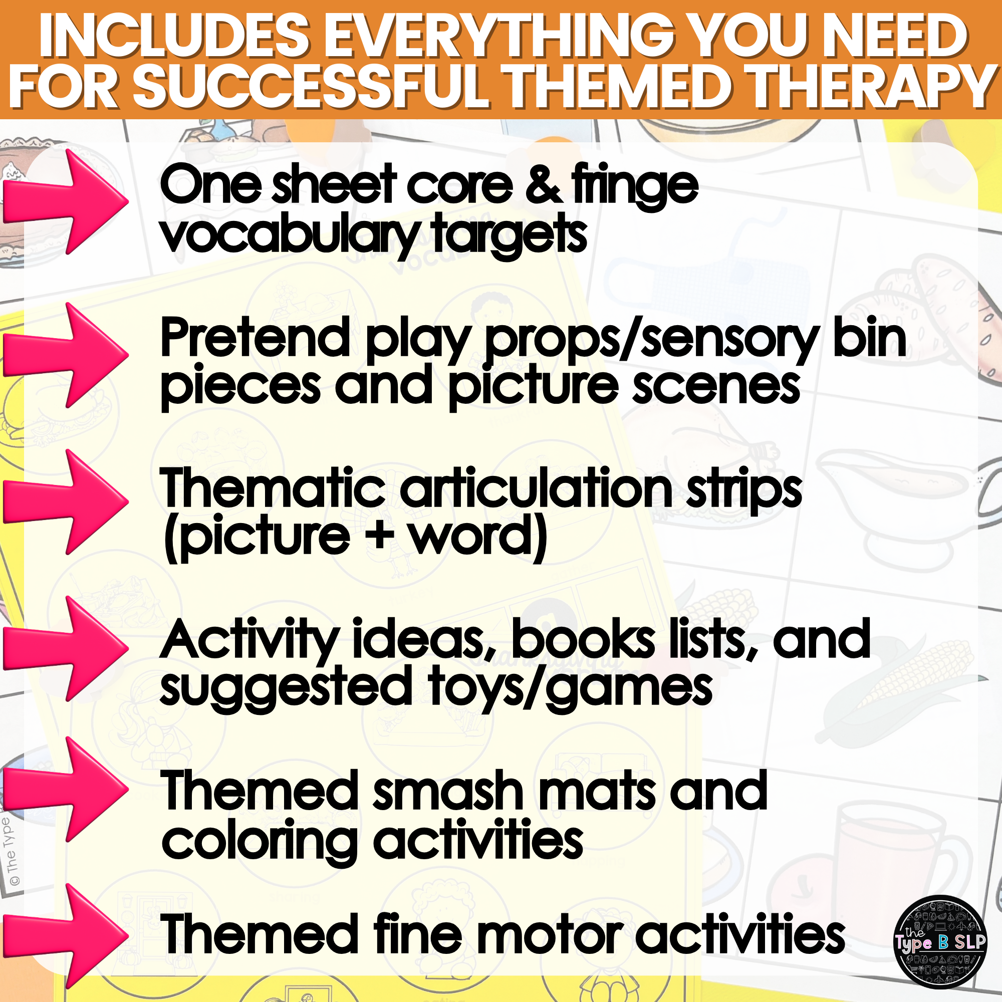 Evidenced based companion packs that you can use with virtually ANY Thanksgiving themed book, activity, or game. This HUGE resource will give you access to TONS of therapy tools to use with any resource, book, game, or activity related to Thanksgiving. This resource includes evidence based practices for vocabulary instruction for young learners (preschool-Kindergarten), presented with research based practices that are broken down for you, so that you can start using these strategies in your therapy room tomorrow!